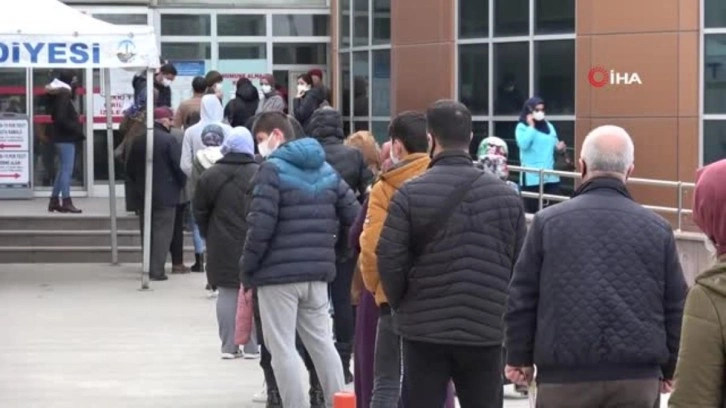 Tokat’ta Covid-19 test kuyruğu Tokat’ta artan vaka sayıları sonrası Covid-19 PCR testi yaptırmak isteyenler hastane önünde uzun kuyruklar oluşturdu.