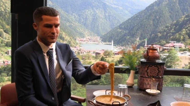 Şehrin en çok turist çeken yerlerinden biri olan Uzungöl'deki bir işletme sahibi, 'kuymak yiyen Ronaldo' heykeli yaptırdı.