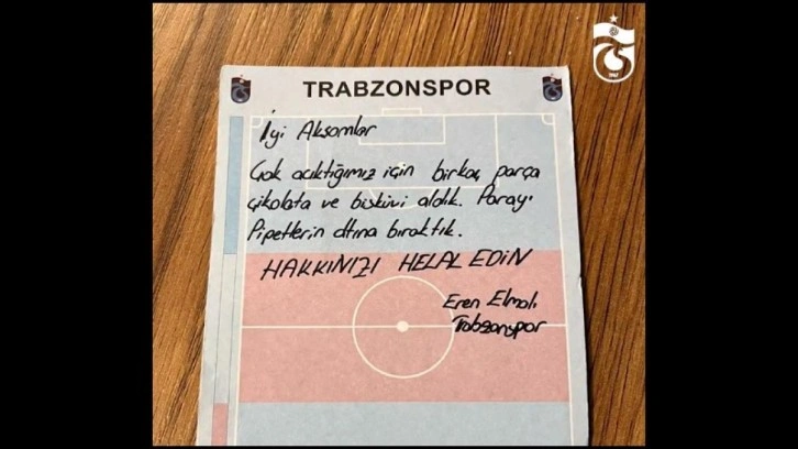 Gece geç saatler olması nedeniyle açık yer bulmakta zorlanan bordo-mavili oyunculardan Enis Destan, kapalı olan bir büfeden çikolata ve bisküvi aldı. Golcü oyuncu, tezgahın arkasına geçerek acıkan diğer takım arkadaşlarının da isteklerini karşıladı. Oyuncular aldıkları çikolata ve bisküvilerin parasını ise Eren Elmalı'nın yazdığı notla birlikte büfeye bıraktılar.