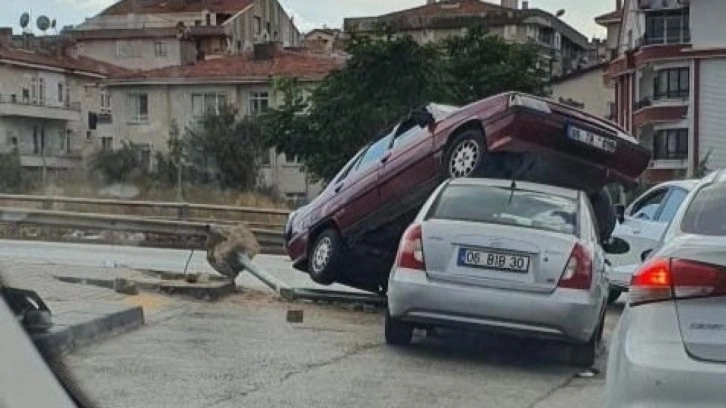 Çarpmanın etkisiyle havalanıp savrulan otomobil, kavşakta kırmızı ışıkta bekleyen S.T.'nin kullandığı 06 BIB 30 plakalı otomobilin üzerine çıktı.