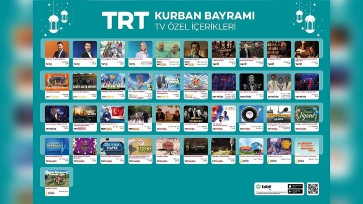 TRT Kurdi'de "Rengen Jiyane (Sabahın Sesi)", "Derman (Sağlık Olsun)", "Elif U Hevalen We (Elif ve Arkadaşları 2: Perişler)", "Eyda Qurbane (Kurban Bayramı)", "Dawiya Hefte (Hafta Sonu)", "Birca Xaçepirsan: Efsuna Çuka Qirase (Bulmaca Kulesi)", "Dengbej (Ozan)", "Pırıl: Efsuna Hejmaran (Pırıl: Sayıların Gizemi)", "Hevdeng (Dilden Gönüle)" ve "Stranbej (Türkülerimiz)" yapımları bayram boyunca izleyicilerle buluşacak. TRT'nin dijital bilgi yarışması "Bil Bakalım" da 6-9 Haziran'da "Hac ve Kurban Etkinliği" düzenlenecek. Yarışmanın özel etkinliği, Kurban Bayramı ve Hac ibadetlerinin esasları, bayram ve bayramın önemi üzerine olacak. TRT radyolarında da gün boyu özel konserler, programlar ve söyleşiler gerçekleştirilecek.