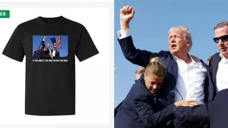 Eski ABD Başkanı Donald Trump'a miting sırasında düzenlenen suikastin üzerinden henüz bir gün bile geçmeden, suikast anı fotoğraf baskısının yer aldığı tişörtler satışa çıktı.
