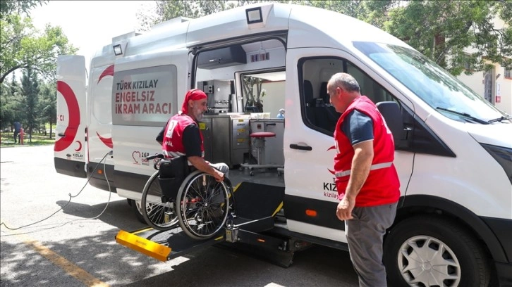 Engelli erişimine uygun şekilde özel olarak tasarlanan ikram aracı, engelli gönüllerinin sahada Türk Kızılay ekipleriyle omuz omuza çalışmasını amaçlıyor.