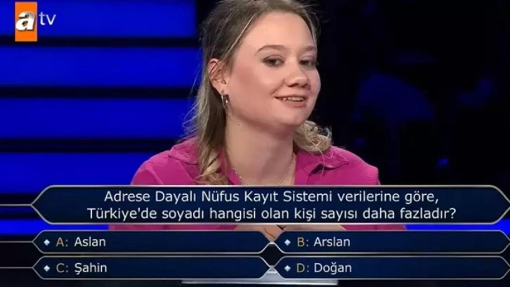 Başarılı oyuncu ve sunucu Oktay Kaynarca'nın sunumuyla ATV'de yayınlanan Kim Milyoner Olmak İster adlı yarışmada sorulan, "Adrese Dayalı Nüfus Kayıt Sistemi verilerine göre, Türkiye'de soyadı hangisi olan kişi sayısı daha fazladır?" sorunun cevabı gündem oldu.