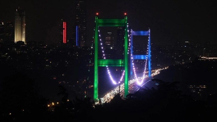 FSM Köprüsü, "18 Kasım Özbekistan Milli Bayrak Günü"ne dikkati çekmek amacıyla mavi, yeşil ve beyaz renge büründü.
