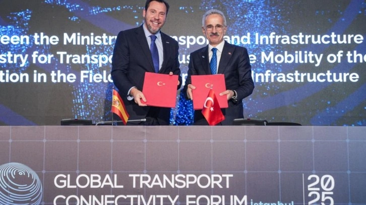 İstanbul Kongre Merkezi'ndeki "Küresel Ulaştırma Koridorları Forumu"nda gerçekleşen imza törenine, Ulaştırma ve Altyapı Bakanı Abdulkadir Uraloğlu ile İspanya Ulaştırma ve Sürdürülebilir Hareketlilik Bakanı Oscar Puente Santiago katıldı.