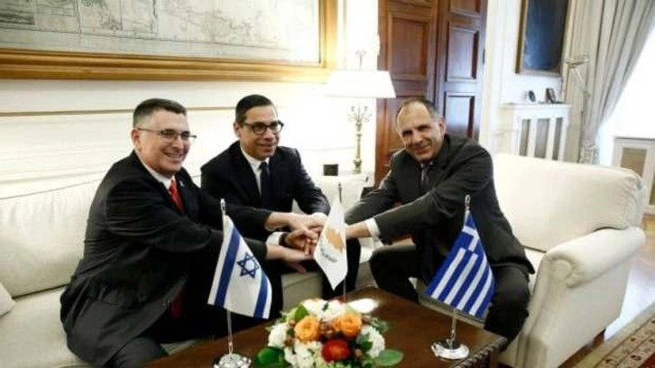 Toplantıya Yunanistan Dışişleri Bakanı Giorgos Gerapetritis, İsrail Dışişleri Bakanı Gideon Saar ve Güney Kıbrıs Dışişleri Bakanı Konstantinos Kompos bir araya geldi.