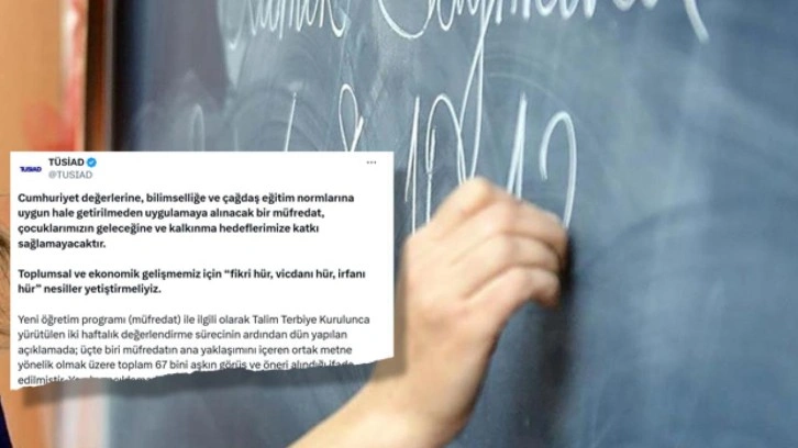 Talim Terbiye Kurulu’nun onayladığı yeni eğitim müfredatıyla ilgili TÜSİAD’ın X hesabından yayınlanan açıklamada, “Cumhuriyet değerlerine uygunluk konusundaki eleştirilerin giderilmesi gerektiği” savunuldu.