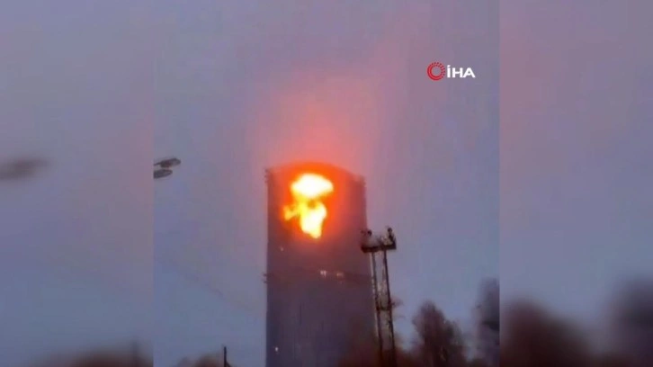 Sosyal medyada paylaşılan görüntülerde bir İHA'nın binaya isabet ettiği, çarpmayla birlikte binadan alev topu yükseldiği ve büyük hasar meydana geldiği görüldü.