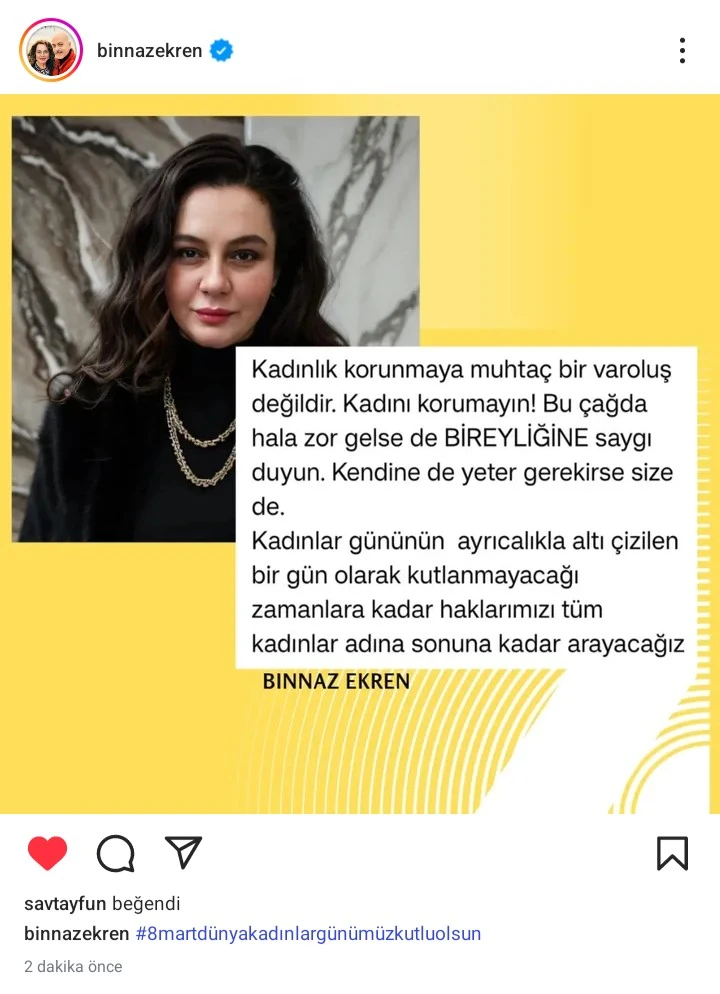 Ünlü Oyuncu Sosyal Medya Üzerinden 8 Mart Dünya Kadınlar Günü Mesajı.