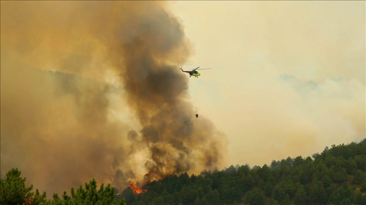 Rüzgarın da etkisiyle kısa sürede büyüyen yangını söndürmek için müdahale sürüyor.