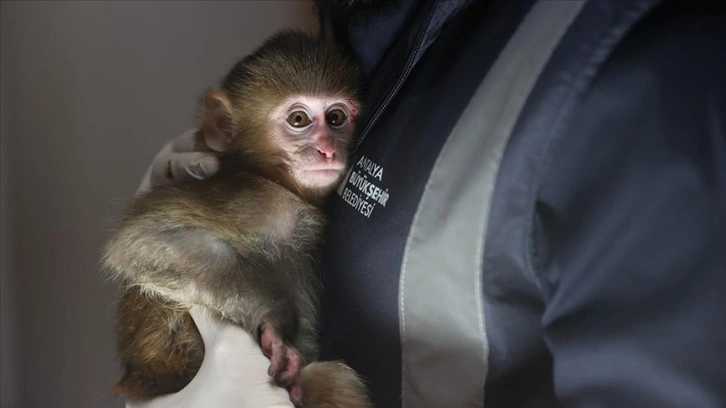 Kentte polis ekiplerince uyuşturucu operasyonu düzenlenen evde bulunarak el konulan 4 aylık erkek rhesus cinsi maymun yavrusu, Antalya Doğal Yaşam Parkı'na teslim edildi.