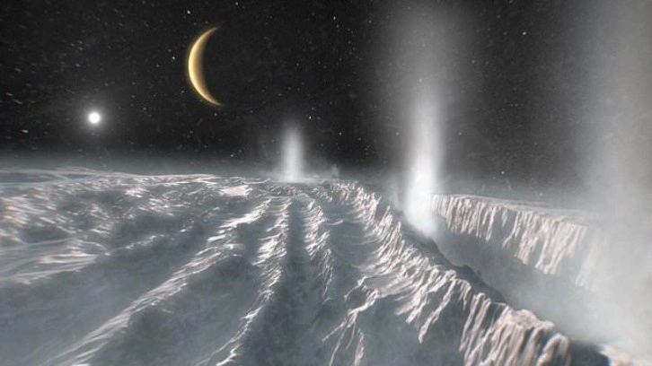 Avrupa Uzay Ajansı (ESA) tarafından yapılan açıklamaya göre, uydunun güney kutbundaki buzlu yüzeydeki çatlaklardan sürekli olarak uzaya fışkıran küçük buz taneleri, yaşam için gerekli koşulları taşıyor.