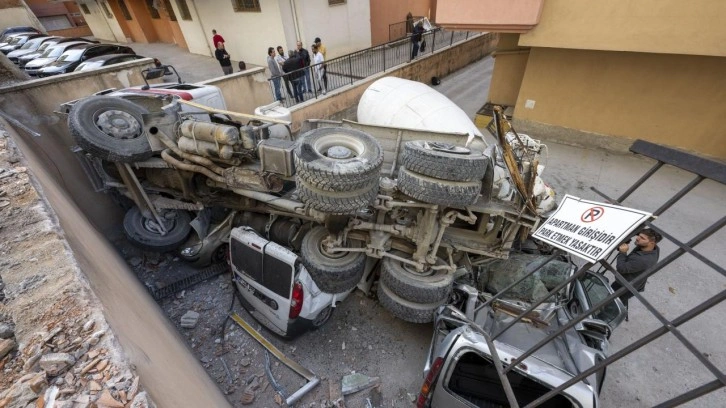 Beton mikseri durdurulamayarak yaklaşık 5 metre yükseklikten alt kısımdaki başka bir binanın otoparkındaki 4 aracın üzerine düştü.