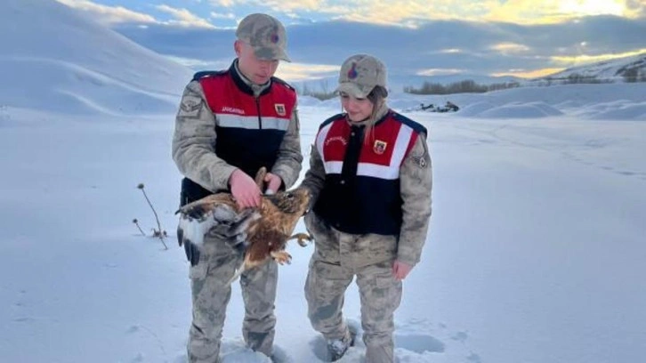 Yaralı kuşu bulunduğu yerden alan jandarma personeli, tedavisi için Doğa Koruma ve Milli Parklar Müdürlüğü (DKMP) görevlerine teslim etti.