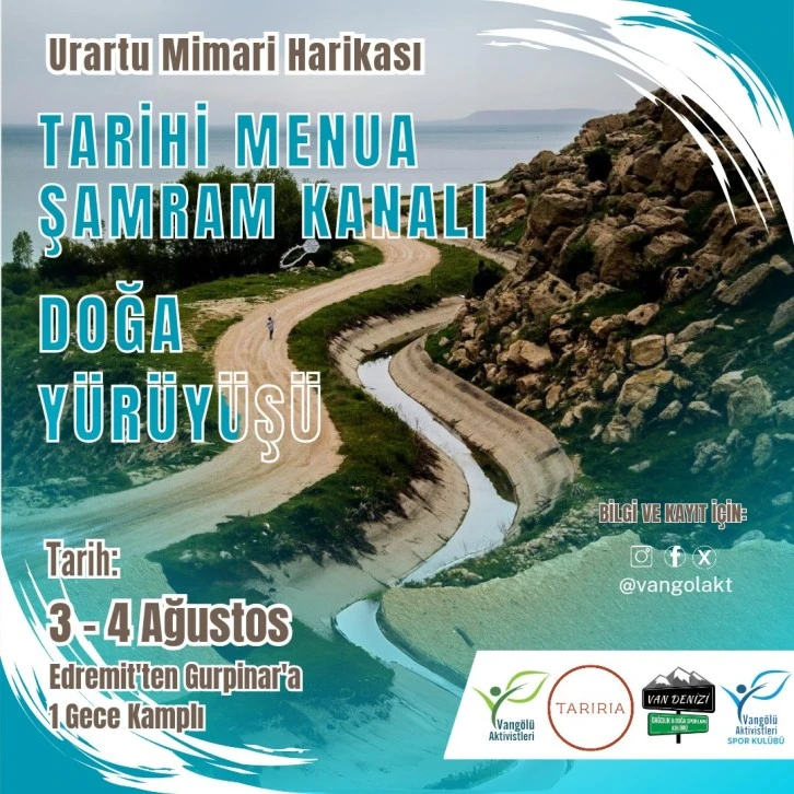3000 yıllık geçmişi ile günümüzde hâla kullanılan, 51 km’lik parkur, 1 gece kamplı “Tarihi Şamram Kanalı Doğa Yürüyüşü’ne” tüm doğa severler davetlidir.