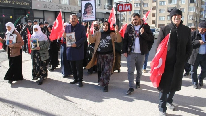 Menekşe Sokak'ta bir araya gelen aileler, "Evlat nöbetindeyiz", "Artık yeter, yakamızdan düşün", "Şehidime dokunma, onlar bize emanet", "Çocuklarımız kimsenin piyonu olmayacak" ve "Van anneleri evlat nöbetinde" yazılı dövizler taşıdı.
