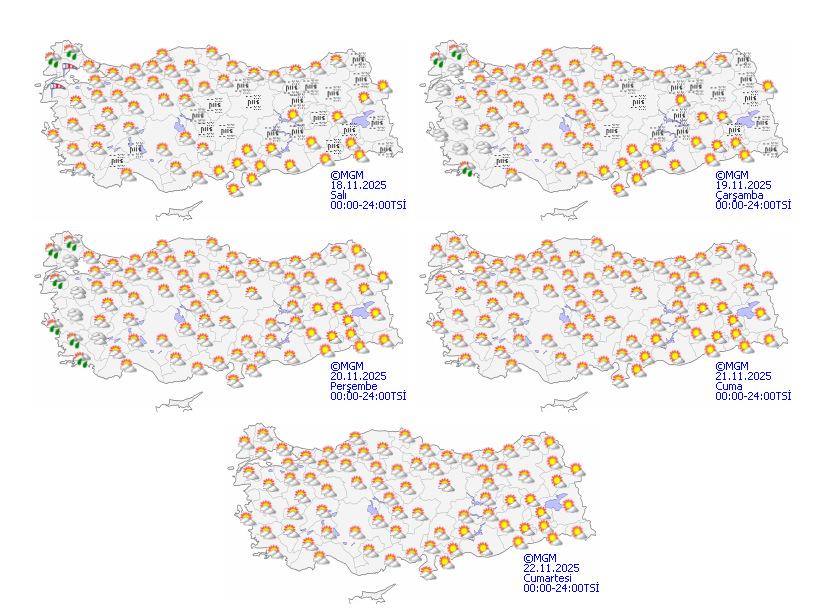 Meteoroloji Genel Müdürlüğü 5 günlük hava durumu raporunu paylaştı. Tahminlere göre, önümüzdeki bir haftalık süreçte Kıyı Ege dışında kalan yerlerde yağış beklenmiyor.