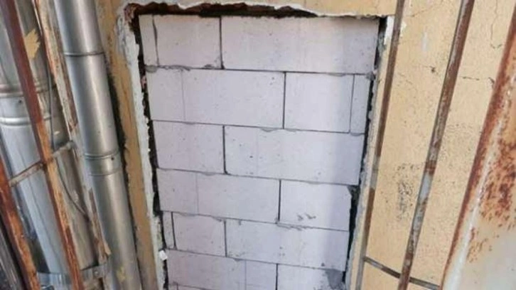 İş yerinin yangın merdivenine çıkış kapısı bulunurken, dairelerin bulunduğu katlardaki çıkışların ise tuğla ile kapatıldığı görüldü.