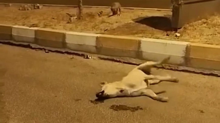 Saldırının ardından telef olan köpeğin yerde can çekiştiği anlar ise bir vatandaşın cep telefonunu kamerasına yansıdı.