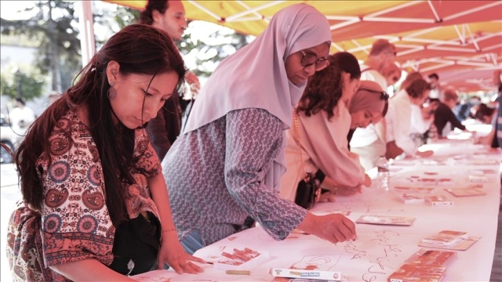Türkiye'nin yanı sıra farklı ülkelerden birçok çocuk, etkinlikte Filistin'deki yaşıtları için resim çizdi.