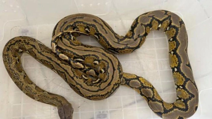 Kutuyu açan ekipler pitonla karşılaştı. Sahibi öğrenilemeyen piton, DKMP ekiplerince kontrol için Kütahya Belediyesi Sokak Hayvanları Bakımevine götürüldü.