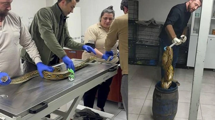 Kutuyu açan ekipler pitonla karşılaştı. Sahibi öğrenilemeyen piton, DKMP ekiplerince kontrol için Kütahya Belediyesi Sokak Hayvanları Bakımevine götürüldü.