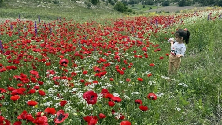 Orta Karadeniz ile İç Anadolu'nun kesiştiği bölgelerde açan gelincik ile farklı türdeki sarı, mavi ve beyaz çiçekler, doğaya güzellik kattı. Rengarenk olan doğada gezintiye çıkan aileler, güzel manzarada fotoğraf çektirdi.