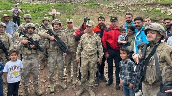 Havadan drone ile karadan da komando, JAK, iz takip köpeği ve arama kurtarma köpeği ile arazide arama yapan ekipler, çocuğu köyden yaklaşık 4 kilometre uzakta uyurken buldu.