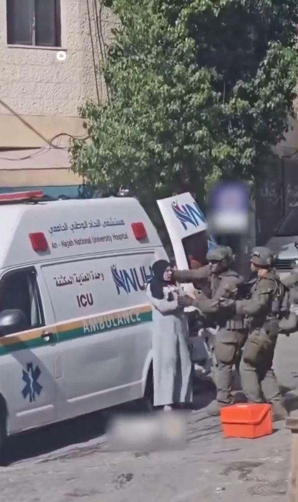 Bölgeye gelen İsrail askerleri ise sağlık çalışanlarının yaralı Filistinliyi hastaneye götürmesini engelliyor.