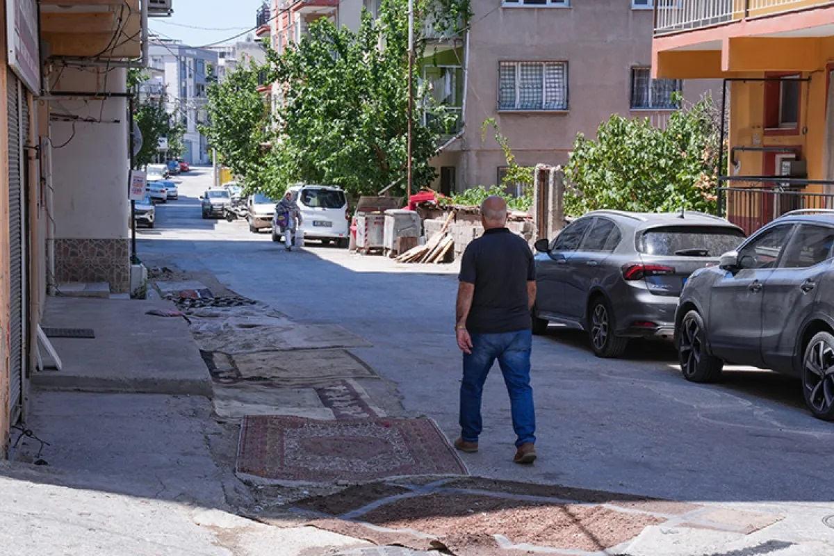 İzmir’in Bayraklı ilçesinde Gümüşpala Mahallesi’nde Temmuz ayında altyapı çalışmaları için kazılan yollar onarılmayınca tozdan etkilenen ve zarar gören araçlar için mahalle sakinleri evlerindeki halıları sokaklara sermekte buldu.