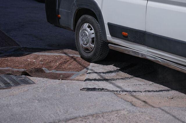 Yoldan geçen araçların kaldırdığı toz, yürüyen insanların çukura takılıp düşmeleri sonrasında kendi çözümlerini üretti.