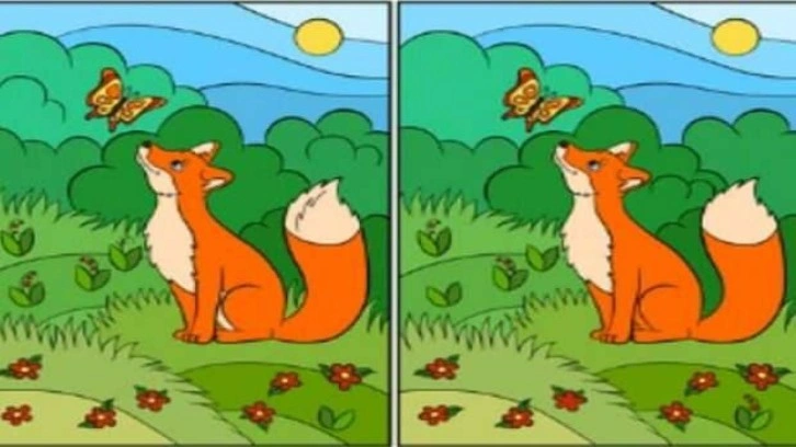 Hazırlanan görselde güneşli bir günde ormanda bulunan tilki sessizce oturduğu görülmektedir. Çiçekler ve bir kelebek de görselde yer almaktadır. Dikkatli bakıldığında farkları görmeye başlayacaksınız. Bulduğunuz farkları karıştırmamak için not alabilirsiniz. Şimdiye kadar kaç tane gördünüz?