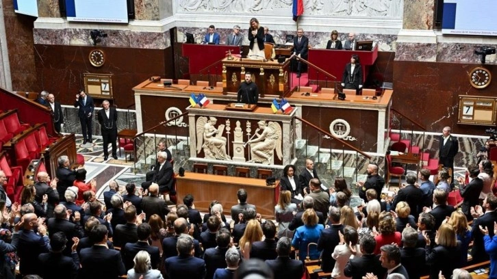Meclis Başkanı Yaël Braun-Pivet tarafından karşılanan Ukraynalı lider, Fransa Başbakanı Gabriel Attal ve Dışişleri Bakanı Stephane Sejourne'nin de olduğu oturumda konuşması öncesi dakikalarca ayakta alkışlandı.