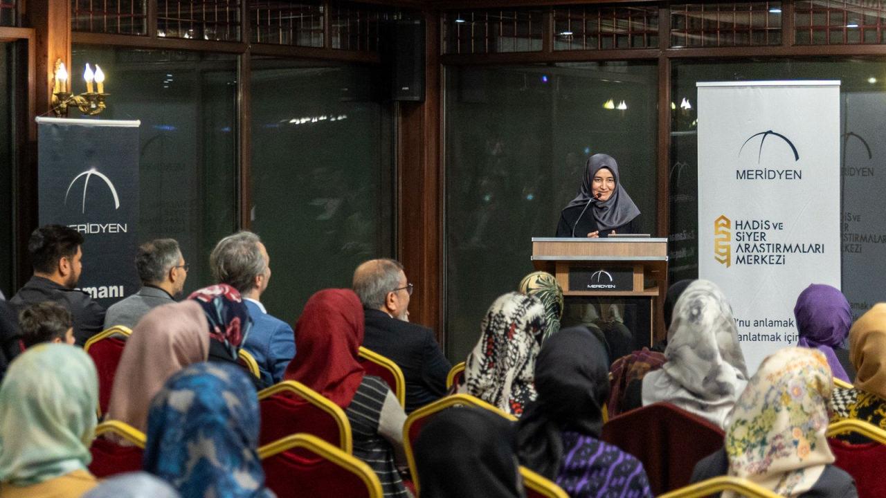 Meridyen Derneği Başkanı Melike Koç’un selamlama konuşmasının ardından kürsüye gelen Prof. Dr. Fatıma Zehra Kamacı, Hadis ve Siyer Araştırmaları Ödülleri’nin önemine ve bu yılki yarışma sürecinin içeriğine dair değerlendirmelerini paylaştı.