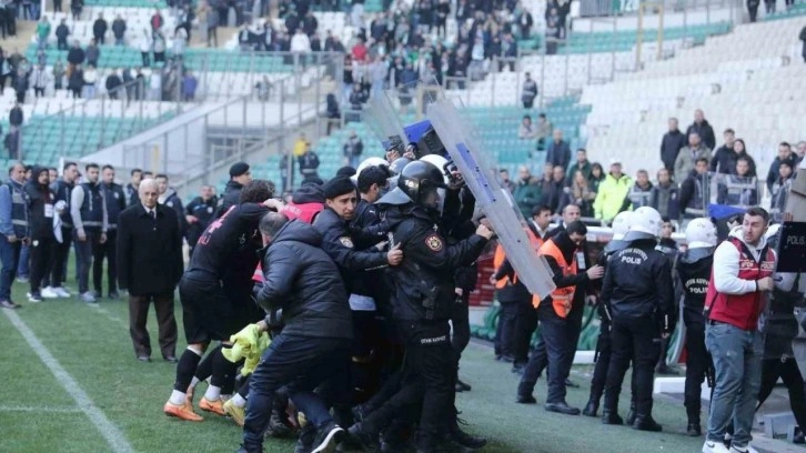 TFF 2. Lig Beyaz Grup'ta Bursaspor ile Diyarbekirspor arasında oynanan 18. hafta mücadelesinde futbolcular arasında arbede yaşandı.
