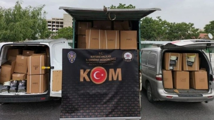 Kayseri'de polis ekiplerince 2 ton 760 kilogram sahte bandrollü tütün ele geçirildi, 4 şüpheli gözaltına alındı.
