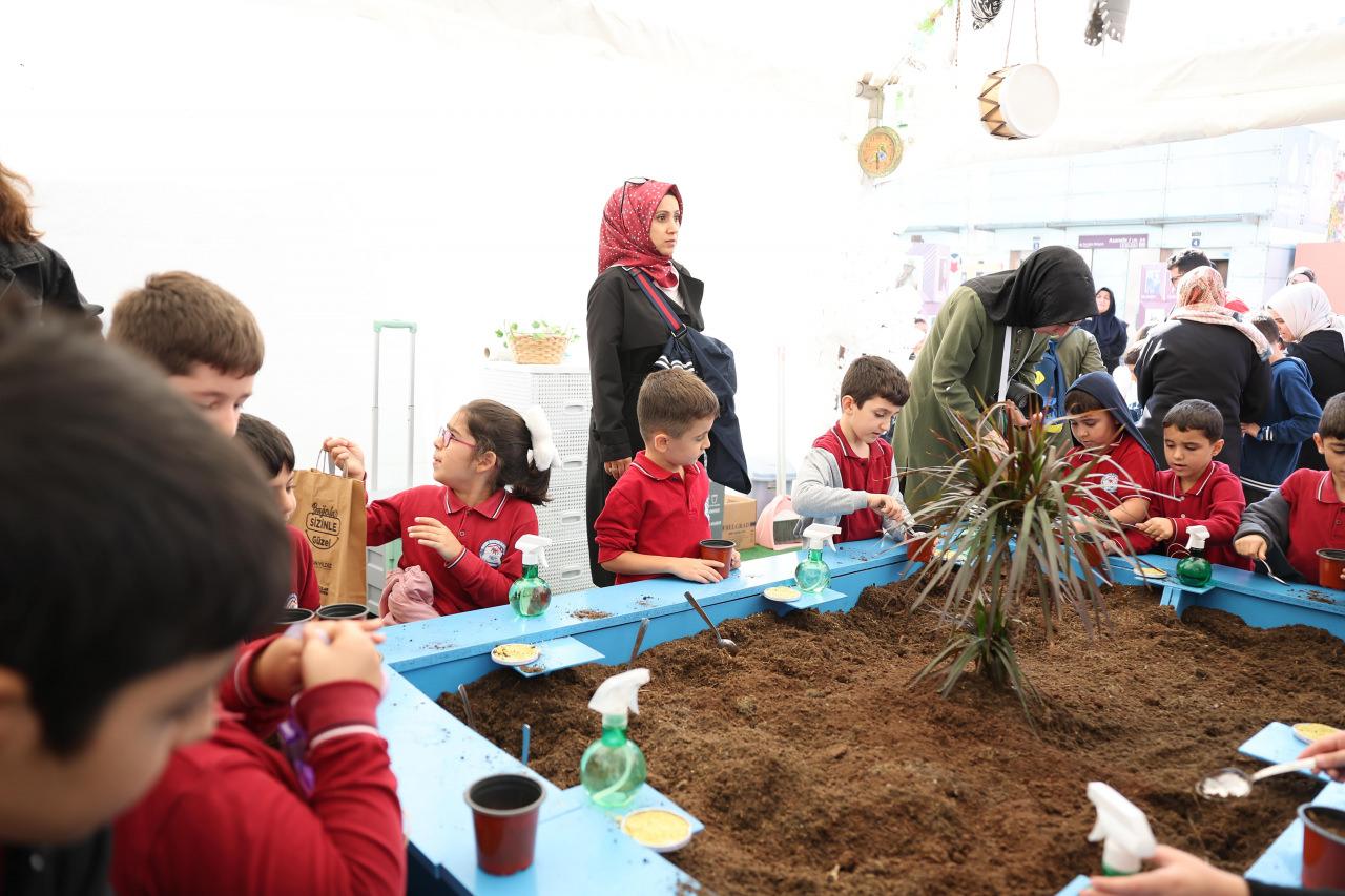 Başka bir köşeye ise Çevre Çadırı kuruldu. Çadırda çocuklar doğa ile tanıştı ve bağ kurdu. Toprakla haşır neşir olan çocuklar tohum ekmeyi de öğrendi. Bunun yanında bir de uygulamalı geri dönüşüm çalışmasında kullanılmış plastik malzemelerden yeni ürünler yaptılar.