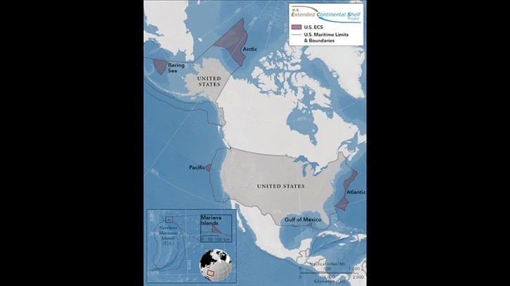 Kıyıdan 200 deniz mili uzakta yer alan alanlarda ülkenin kıta sahanlığının dış sınırlarını tanımlayan coğrafi koordinatlar yayımlayan ABD'nin genişletilmiş kıta sahanlığı alanının yedi bölgeye yayılmış yaklaşık bir milyon kilometrekare olduğu ifade ediliyor.