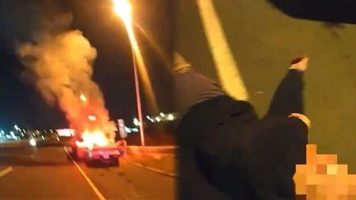 Polis memuru, yoğun duman ve yükselen alevlere aldırmadan sürücünün kapısını açmaya çalıştı. Kapıyı açmayı başaran memur, baygın haldeki sürücüyü dışarı çekerek güvenli bir noktaya götürdü. O anlar, olay yerindeki bazı kişiler tarafından kaydedildi ve izleyenleri hayrete düşürdü.