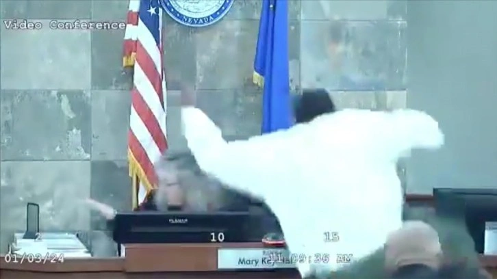 Hakim Holthus kürsünün altında saklanırken, güvenlik güçleri, Redden'a müdahale ederek hakimden uzaklaştırdı.