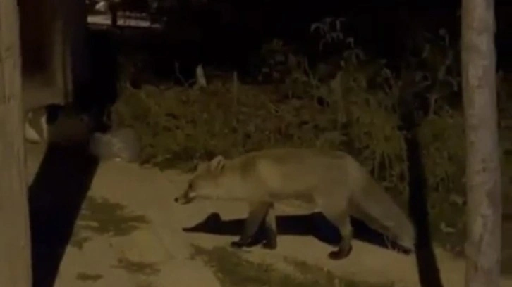 Elazığ'da aç kalan tilki şehir merkezine kadar indi. O anlar cep telefonu ile kaydedilirken, uzun süre yiyecek arayan tilki daha sonra gözden kayboldu.