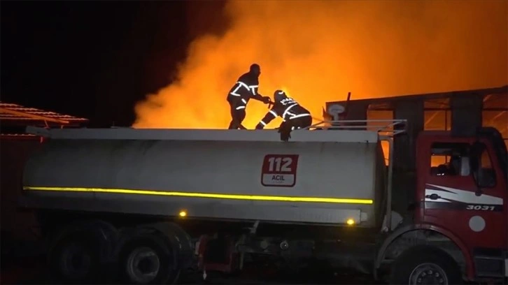 ADANA (AA) - Adana'da ahşap imalathanesinde çıkan yangın söndürülmeye çalışılıyor.