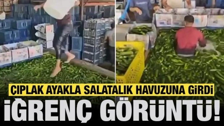 Adana'daki bir meyve sebze deposunda skandal görüntüler kaydedildi. İncirlik Mahallesi'ndeki depoda bir çalışan salatalıkların yıkandığı havuza çıplak ayaklarla girdi. Depoda hijyen kurallarının tamamen hiçe sayıldığı görüldü. Çalışan sepete doldurduğu salatalıkları daha sonra kasaya döktü.