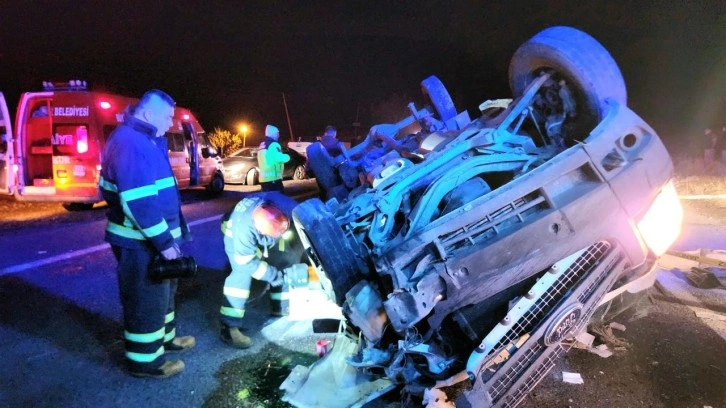 Kazada sürücü ile kamyonetteki Bülent B. ve Ertuğrul Korkmaz (53) araç içerisinde sıkıştı.