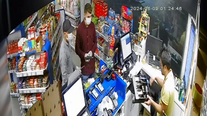Onur E. ile yanındaki saha görevlisi Mehmet Hanifi D. (46), şüphelilerden soygunu durdurmasını istedi. Bunun üzerine E.İ., suç ortağı İbrahim A.'nın belindeki tabancayı çıkarıp, havaya 1 el ateş etti. Paniğe kapılan Onur E., kasadaki ve çekmecedeki 20 bin lirayı çıkarıp, şüphelilerin verdiği poşete doldurdu. Şüpheliler, birkaç paket sigarayı da alıp, dışarıda gözcülük yapan arkadaşları İ.Ö. ile koşarak kaçtı. Olay, iş yerinin güvenlik kamerasına yansıdı.