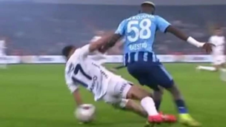 Fenerbahçe'nin kullandığı köşe vuruşunda Adana Demirspor'lu savunma oyuncusu Tolga, Edin Dzeko'ya müdahalede bulundu. Bosna-Hersekli futbolcu pozisyonun ardından yerde kalırken maçın hakemi Halil Umut Meler oyunu devam ettirdi.