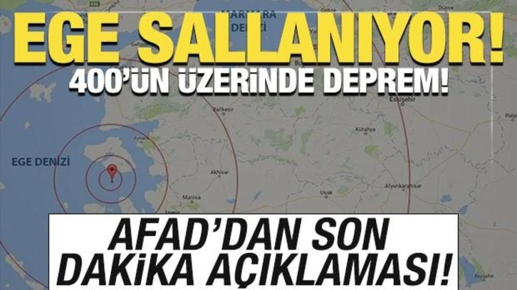 AFAD'ın sosyal medya hesabından yapılan paylaşımda, Ege Denizi'nde, 28 Ocak'tan itibaren yoğunlaşan depremlerin sayısının 400'ün üzerine çıktığı bildirildi.