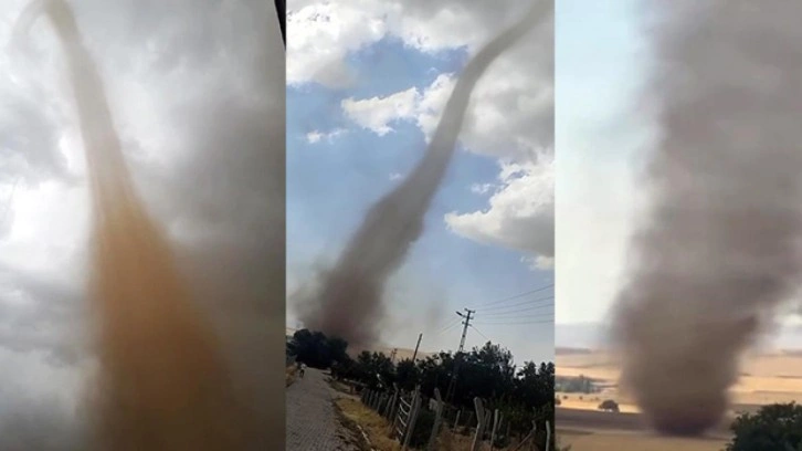 Yüzlerce metre yükseğe çıkan hortumun görüntüsü, cep telefonu kamerasıyla kaydedildi.