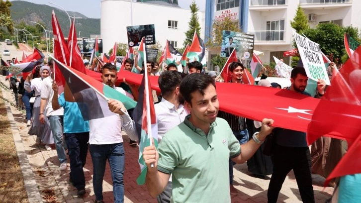 Alanya Alaaddin Keykubat Üniversitesinde (ALKÜ) öğrenciler, akademisyenler ve idari personelin katılımıyla İsrail'in Gazze'ye yönelik saldırılarına tepki göstermek amacıyla cuma namazı çıkışı yürüyüş düzenlendi. ALKÜ Rektörlüğünün de destek verdiği yürüyüşe Genel Sekreter Vekili Onur Ocakdan, Alanya İlçe Müftüsü Dr. İhsan İlhan, İHH İnsani Yardım Vakfı Alanya Şubesi Yönetim Kurulu Başkanı Adnan Yavuz, Dekanlar, MYO Müdürleri, Daire Başkanları, akademisyenler, idari personel ve öğrenciler katıldı. ALKÜ Nimet Alaattinoğlu Camisi’nden başlayan yürüyüş, sloganlar eşliğinde Türk ve Filistin bayraklarıyla birlikte ALKÜ giriş kapısına kadar devam etti.